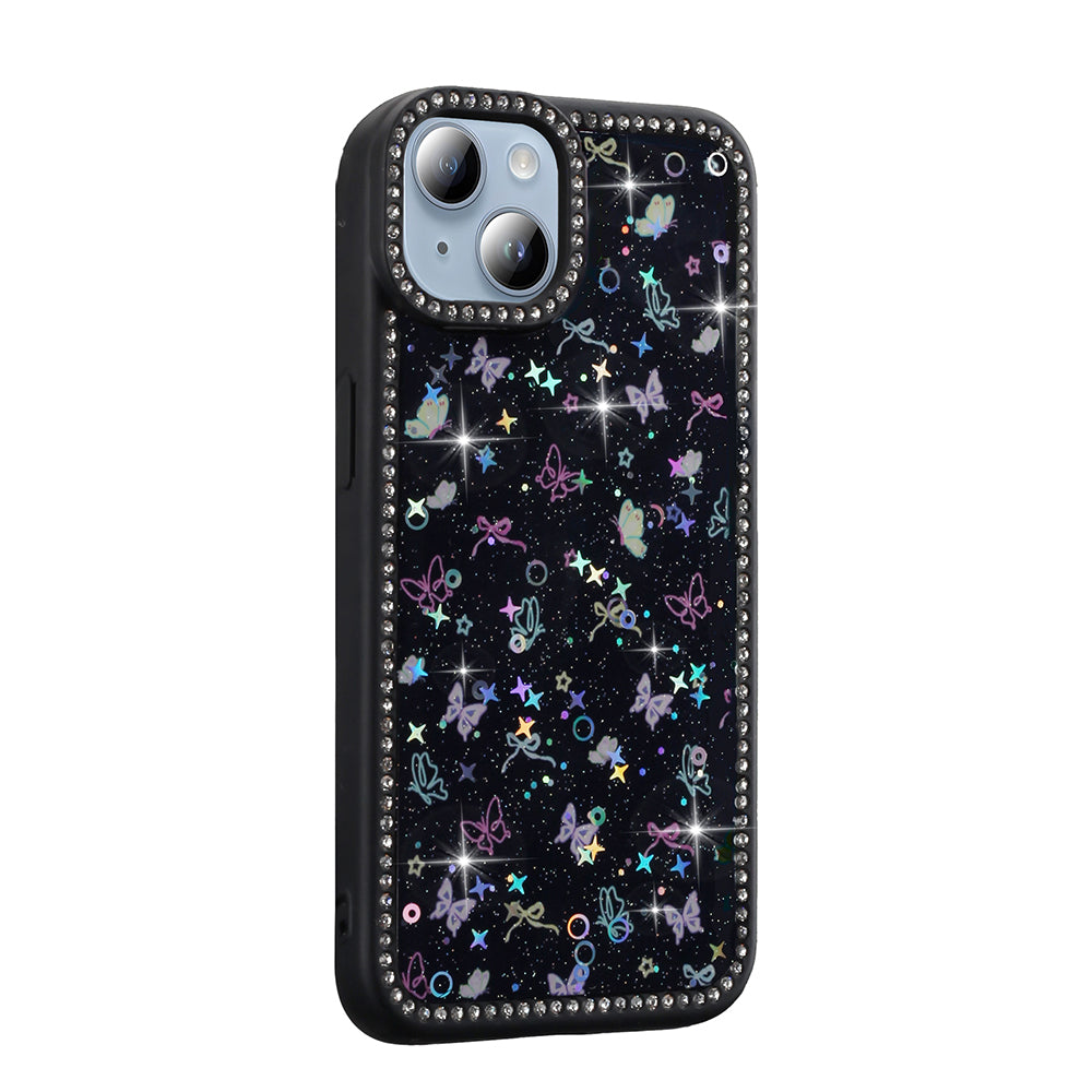 Apple iPhone 15 Kılıf Taşlı ve Simli Tasarım Zore Azra Kapak Siyah