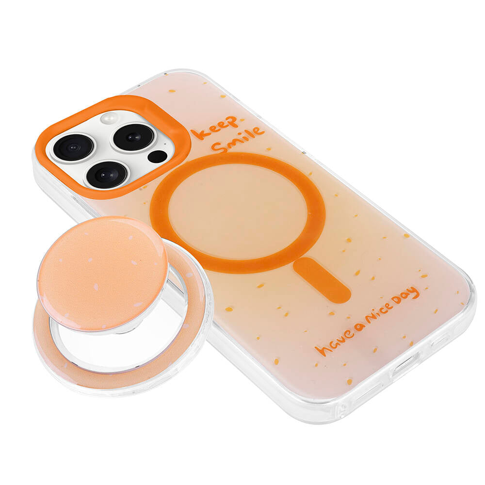 Apple iPhone 15 Pro Max Kılıf M-safe Şarj Özellikli Tak-Çıkar Pop Soketli Zore Tiktok Kapak Turuncu
