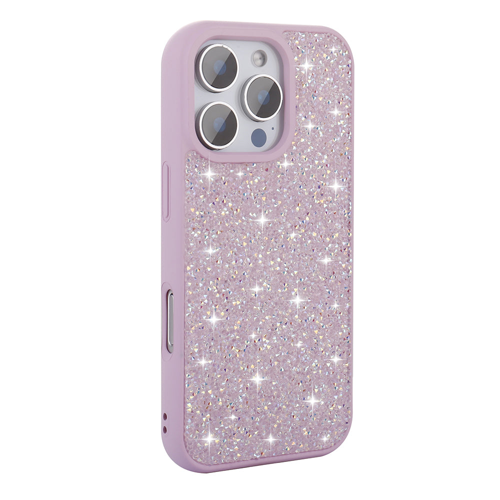 Apple iPhone 16 Pro Kılıf Parlak Taşlı Tasarım Zore Pırlanta Kapak Lila