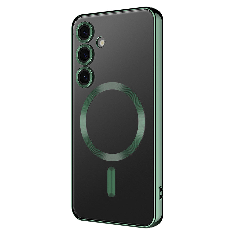Galaxy S24 FE Kılıf Kamera Korumalı M-safe Wireless Şarj Özellikli Zore Demre Kapak Koyu Yeşil