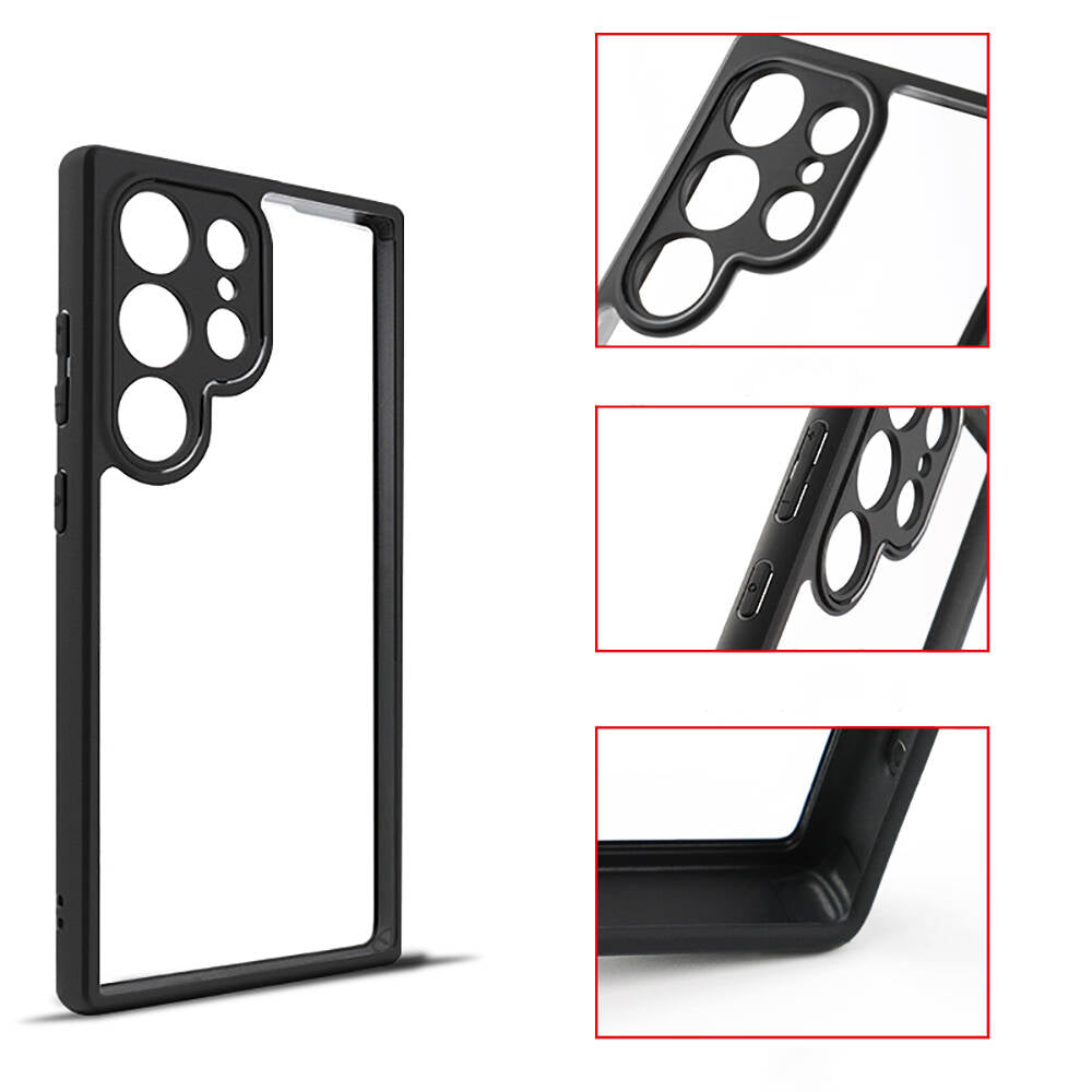 Galaxy S24 Ultra Kılıf Kamera Korumalı Şeffaf Arka Yüzey Zore New Roll Kapak Siyah