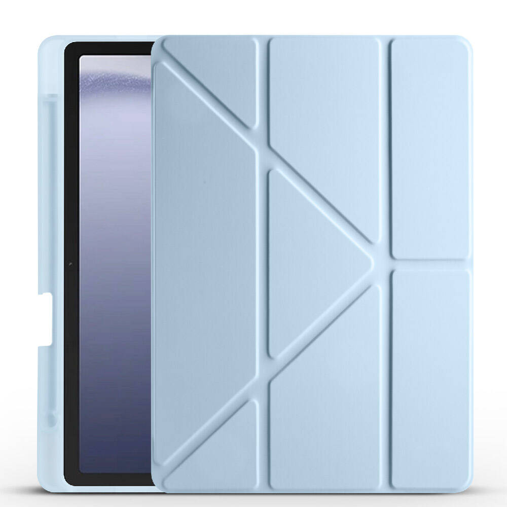 Galaxy Tab A9 Kılıf Zore Tri Folding Kalem Bölmeli Standlı Kılıf Mavi
