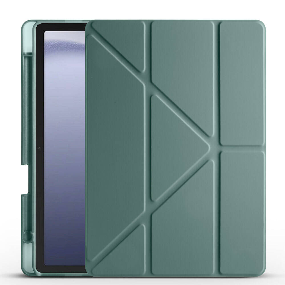 Galaxy Tab A9 Plus Kılıf Zore Tri Folding Kalem Bölmeli Standlı Kılıf Koyu Yeşil