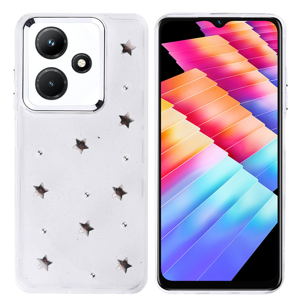 İnfinix Hot 30i Kılıf Airbag Tasarımlı Simli Şeffaf Zore Kutup Kapak Yıldız